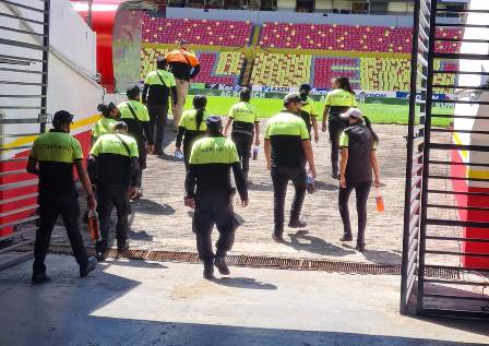 La Coordinación de Protección Civil y Bomberos de Morelia realizó un recorrido en el “Coloso del Quinceo” y revisó el exterior e interior del estadio con la presencia del coordinador operativo del Club Atlético Morelia, Sergio Ortiz, por lo que se determinó que el partido de esta tarde se podrá llevar a cabo sin riesgo alguno para el público asistente.