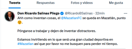 respuesta salinas 2103Argumenta que no hay afición al futbol en esa ciudad, sino al beisbol, por ello se buscará un acuerdo para lograr al equipo de regreso
