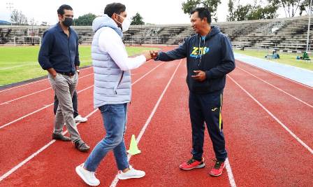 Acompañado por su equipo de colaboradores, el titular de la Cecufid, Morón Vidal, emprendió un recorrido por las instalaciones del CDER, con la finalidad de supervisar el estado que guardan y a la brevedad posible, rehabilitar lo que sea necesario, mismo que dio comienzo en el Centro Médico, para posteriormente ingresar al legendario Estadio Venustiano Carranza, donde verificó la cancha y pista sintética, además de saludar a los atletas del Club Atlético Zatopek a cargo del entrenador Joel Arturo Martínez, quienes en más de una ocasión han puesto en alto el nombre de nuestro estado en justas de carácter nacional e internacional.