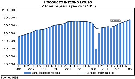 inegi pib 26052605En el primer trimestre de 2023 y con cifras desestacionalizadas, el Producto Interno Bruto (PIB) aumentó 1 % a tasa trimestral, en términos reales.