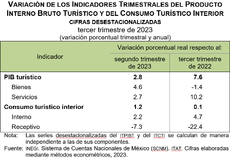 El Instituto Nacional de Estadística y Geografía (INEGI) presenta los resultados de los Indicadores Trimestrales de la Actividad Turística (ITAT). Estos permiten conocer y dar seguimiento a la evolución del Producto Interno Bruto Turístico (ITPIBT) y del Consumo Turístico Interior (ITCTI).