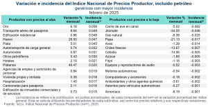 En febrero de 2025, el INPP total, incluido petróleo, incrementó 0.60 % a tasa mensual y 7.97 % a tasa anual. En el mismo mes de 2024, creció 0.41 % a tasa mensual y 1.47 % a tasa anual.
