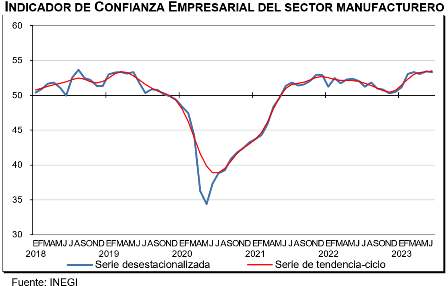 Con cifras originales, el Indicador Global de Opinión Empresarial de Confianza (IGOEC) —que es el promedio ponderado de los indicadores de los cuatro sectores que lo integran— fue de 54.9 puntos en junio de 2023, lo que representa un alza de 3.4 puntos con relación al mismo mes de 2022.