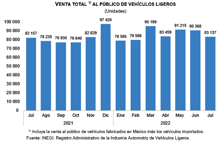 En julio, se vendieron al público 83 137 unidades en el mercado interno. En el periodo enero-julio de 2022 se comercializaron 601 561 unidades.