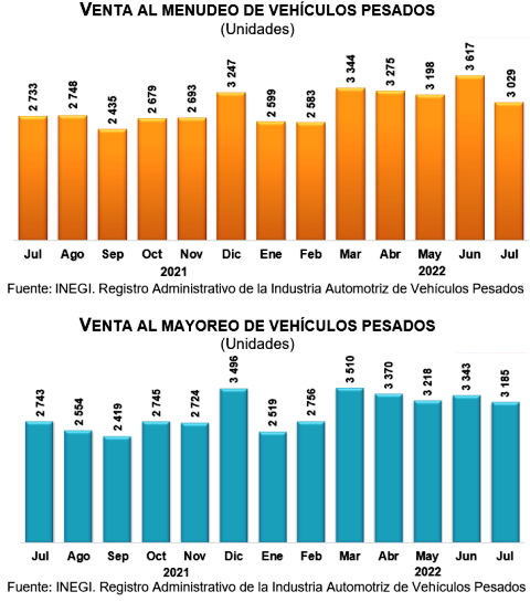En julio de 2022, las diez empresas que conforman este registro vendieron 3 mil 29 vehículos pesados al menudeo y 3 mil 185 al mayoreo en el mercado nacional.