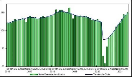 En las Empresas Comerciales al por Menor los Ingresos reales fueron superiores en 29.6%, las Remuneraciones medias reales ascendieron 7.9% y el Personal ocupado total subió 4.1% en el mes de referencia frente a mayo de 2020, con series ajustadas por estacionalidad.