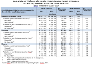 En el tercer trimestre de 2024 y con series desestacionalizadas, la TD a nivel nacional fue de 2.8 %: tasa semejante a la del trimestre anterior.