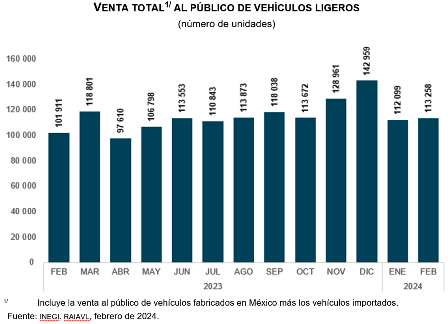 El Instituto Nacional de Estadística y Geografía (INEGI) da a conocer el avance de las ventas al público en el mercado interno, según el Registro Administrativo de la Industria Automotriz de Vehículos Ligeros (RAIAVL), en febrero del presente año.