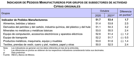 El Instituto Nacional de Estadística y Geografía (INEGI) y el Banco de México dan a conocer el Indicador de Pedidos Manufactureros (IPM) de octubre de 2021. El IPM incorpora variables similares a las del PMI que elabora el Institute for Supply Management (ISM) en Estados Unidos.