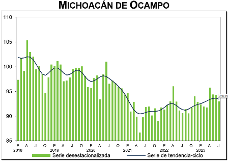 En contraste, Michoacán registra su tercer reporte a la baja de manera consecutiva; en el mes en mención, reporta una cifra negativa de 1.3 por ciento.