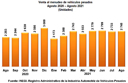 En agosto de 2021, las diez empresas que conforman este registro vendieron 2 748 y 2 554 unidades en el mercado nacional al menudeo y mayoreo, respectivamente.