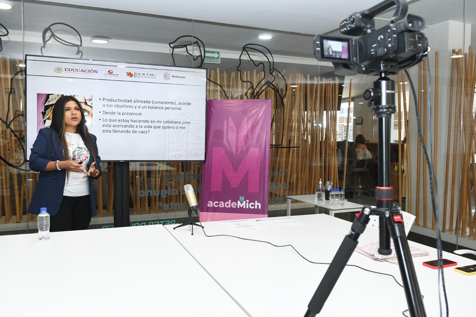 Morelia, Michoacán.- Con el objetivo de que las y los emprendedores michoacanos puedan alcanzar sus metas con base a productividad desde la estrategia de la Secretaría de Desarrollo Económico (Sedeco), Academia de Michoacán (acadeMich), se brindó la capacitación, Autoconocimiento hacia una productividad alineada.