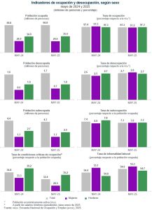 La información de la ENOE, para mayo de 2025, muestra que la población subocupada (personas que declararon tener necesidad y disponibilidad para trabajar más horas de lo que su ocupación actual les demanda) fue de 4.3 millones de personas, 187 mil menos respecto a mayo de 2024. La tasa de subocupación se ubicó en 7.1 % de la población ocupada, porcentaje inferior al 7.4 % registrado en mayo del año pasado. Al distinguir por sexo, la tasa correspondiente en las mujeres fue de 7.0 % y en los hombres, de 7.1 por ciento.