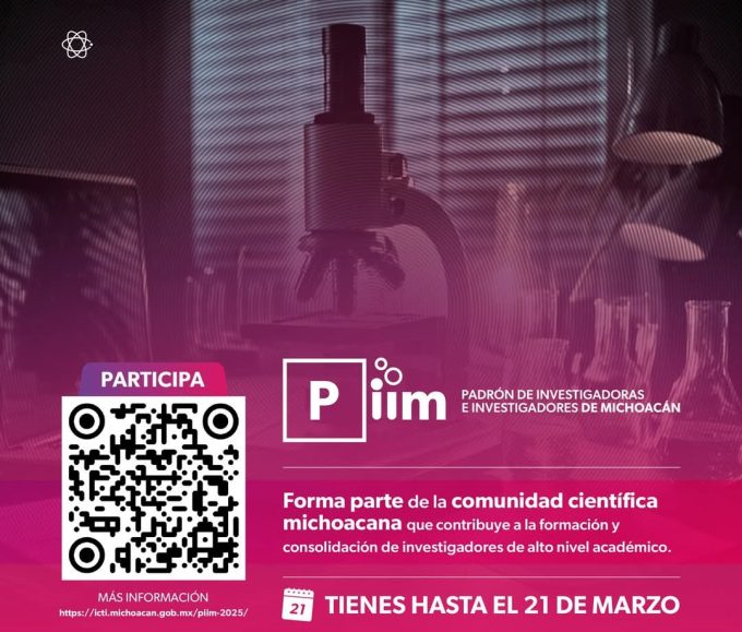 El Instituto de Ciencia, Tecnología e Innovación (ICTI) dio a conocer la convocatoria para integrar el Padrón de Investigadoras e Investigadores de Michoacán (PIIM), misma que estará disponible del 30 de enero al 21 de marzo, informó la directora general, Alejandra Ochoa Zarzosa.
