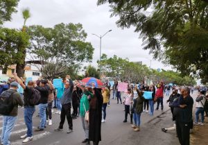 Los inconformes hicieron cadena humana al costado de la avenida con cartulinas en la mano denunciando la falta de atención, pero ahora sí bloquean el paso y han denunciado la actitud prepotente de esta funcionaria ya señalada, y en exigencia de atención inmediata del secretario de Gobierno para instalar la mesa de diálogo y trabajo con UESICAMM.