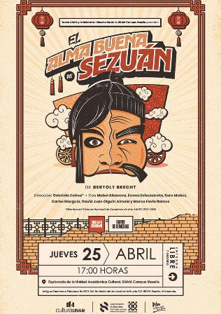 Tras el estreno de la producción número 28 en el Centro Cultural Universitario de la Ciudad de México, el Carro de Comedias de la UNAM partirá rumbo a Michoacán para ofrecer sus primeras funciones en gira en el marco de las actividades de la Fiesta del Libro y de la Rosa Michoacán 2024, por lo que el elenco de “El alma buena de Sezuán” viajará a Morelia del 24 al 27 de abril.