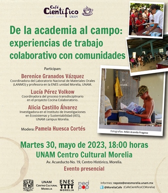 El “Café Científico” del mes de mayo dedicará su sesión a estas cuestiones, la conversación se titula “De la academia al campo: experiencias de trabajo colaborativo con comunidades” y tendrá lugar el próximo martes 30 de mayo a las 18:00 horas en las instalaciones del Centro Cultural UNAM ubicado en Avenida Acueducto no. 19 en el centro de Morelia.