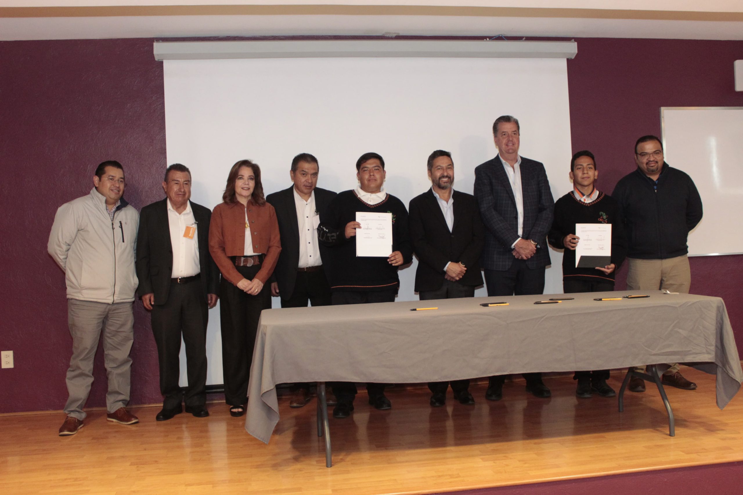 Ambos estudiantes en presencia de las autoridades educativas y empresariales, firmaron el acuerdo correspondiente con la empresa donde se comprometen a cumplir en tiempo y forma los horarios y los días establecidos para cumplir con la formación dual.