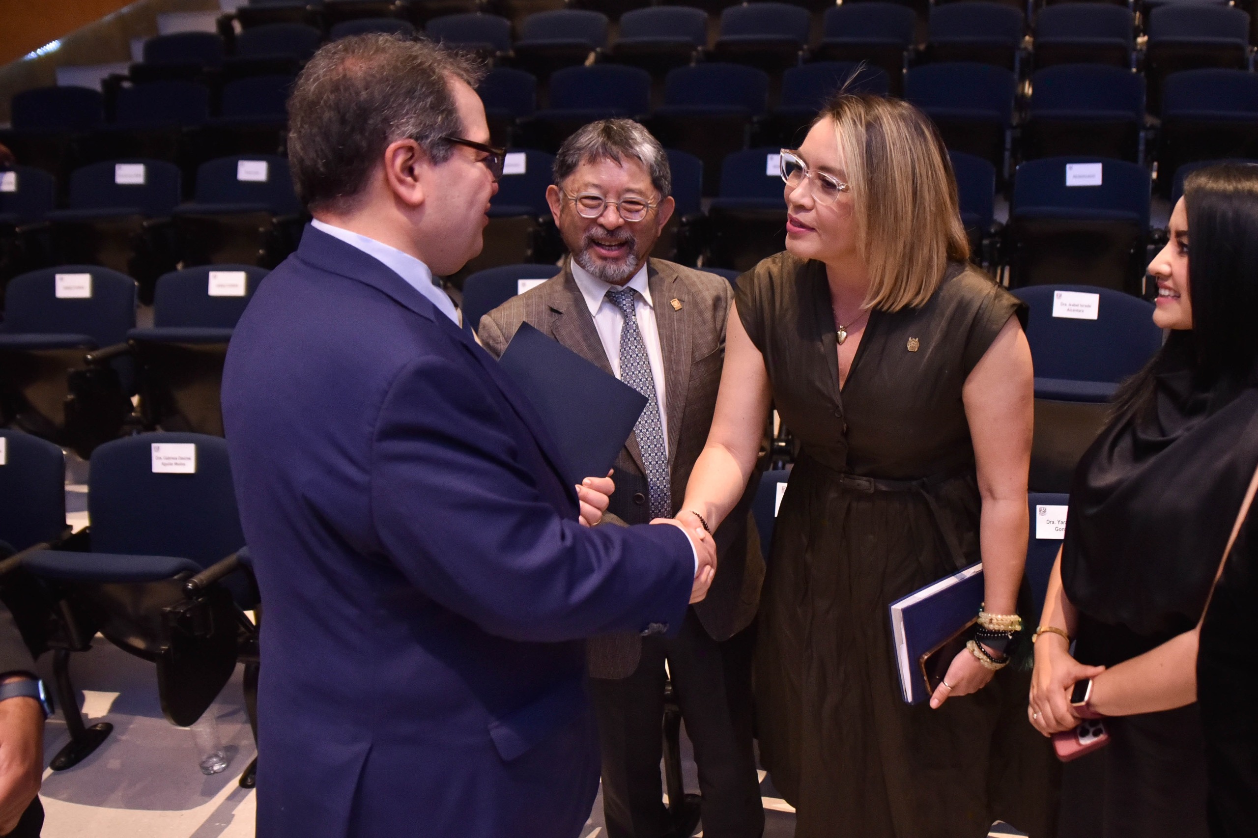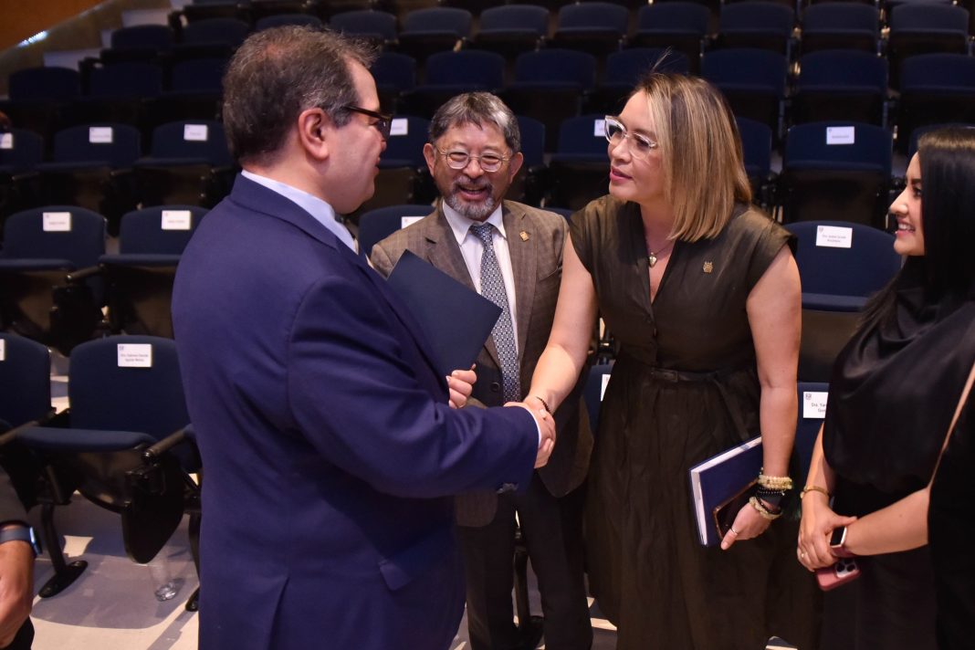 Durante el informe que rindió el director de la ENES Morelia, Mario Rodríguez Martínez, también se contó con la presencia del doctor Alberto Ken Oyama Nakagawa, integrante de la Junta de Gobierno de la UNAM; de las secretarias de Educación en el Estado y de Desarrollo Urbano y Movilidad, Gabriela Molina Aguilar y Gladyz Butanda Macías, respectivamente; de la directora del Instituto de Ciencia, Tecnología e Información, Alejandra Ochoa Zarzosa; del coordinador de la Investigación Científica de la UMSNH, Jesús Campos García, así como de la planta docente y estudiantil de la ENES.