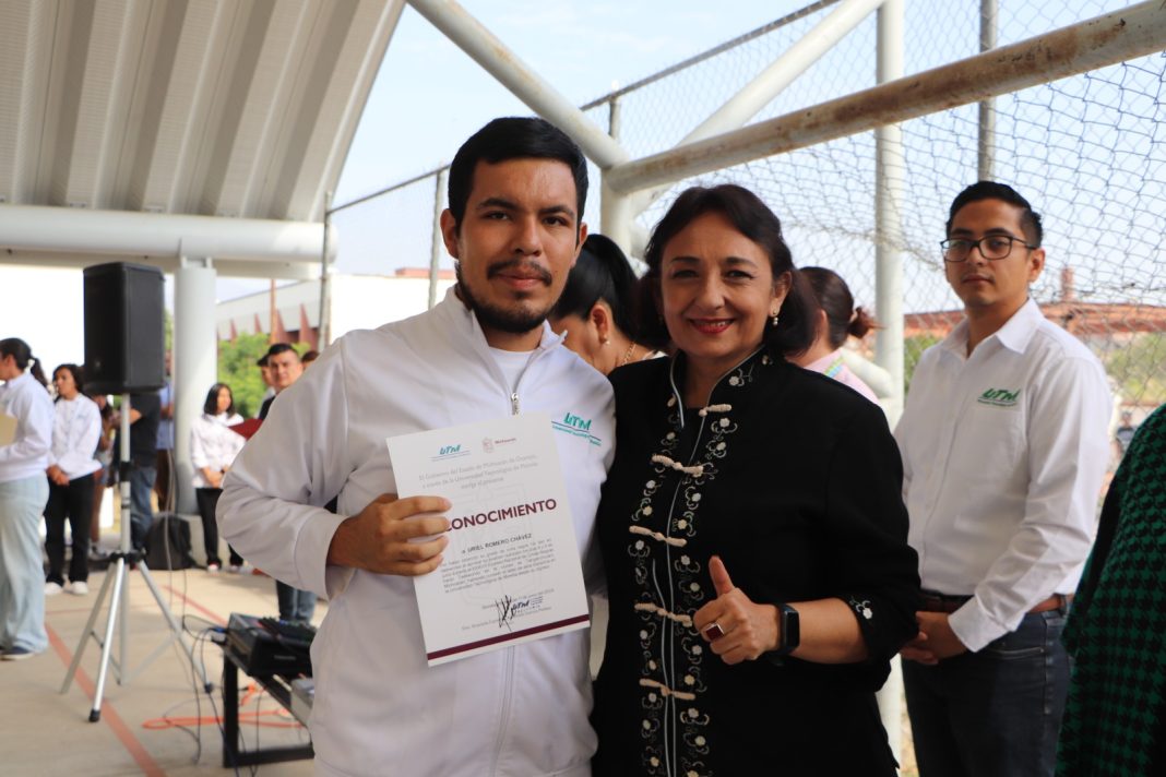 Morelia, Michoacán.- La delegación de la Universidad Tecnológica de Morelia (UTM) fue abanderada por su rectora Graciela C. Andrade García Peláez, quien exhortó a los estudiantes a honrar la bandera y representar con orgullo a su institución en el primer Encuentro Regional Deportivo y Cultural del Subsistema Tecnológico en Xalisco, Nayarit.