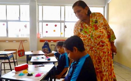 “Ser docente es una constante motivación, actualización, puesta en práctica del conocimiento, y sobre todo, un constante aprendizaje de las niñas y niños”, afirmó la maestra María Guadalupe Villagómez, quien tiene cinco décadas al servicio del sistema educativo.