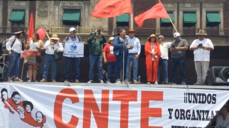 Los centistas del ala oficial de la Coordinadora Nacional de Trabajadores de la Educación que en Michoacán lidera Eva Hinojosa Tera, han acudido hoy a la convocatoria de las dirigencias de la CNTE de todos los estados del país agrupadas en la dirigencia nacional del magisterio democrático, para marchar por la mañana en la Ciudad de México, habiendo instalado plantón en el Zócalo fuera de Palacio Nacional e iniciado el paro indefinido de clases y labores este Miércoles.
