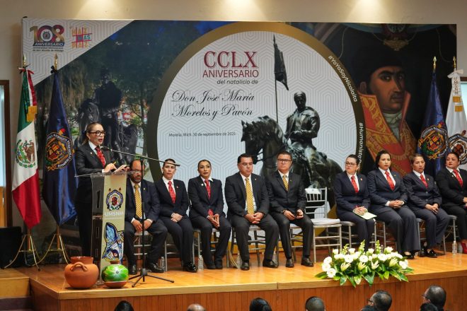 “La justicia era la base de la convivencia para don José Maria Morelos y Pavón, él afirmaba que las leyes debían servir al bien común y no a los intereses de unos cuantos, practicar la justicia en nuestra vida cotidiana significa ser honestos, respetar a los demás y defender lo que es correcto, incluso cuando resulta difícil, quizá uno de sus legados más profundos”, afirmó la rectora de la Universidad Michoacana de San Nicolás de Hidalgo (UMSNH), Yarabí Ávila González, durante el acto con motivo del CCLX Aniversario del natalicio de don José María Morelos y Pavón, celebrado en la preparatoria nicolaita que lleva su nombre.