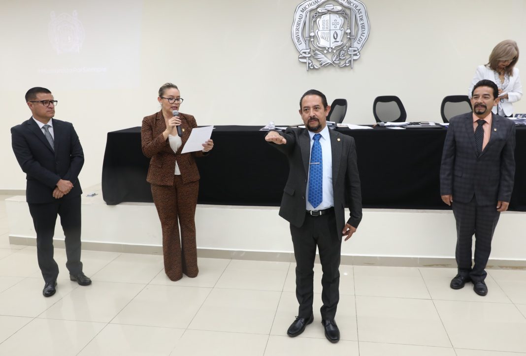 El Consejo Universitario designó al maestro Manuel López Rodríguez como nuevo director de la Facultad de Medicina Veterinaria y Zootecnia (FMVZ), quien recibió de manos de la rectora de la Universidad Michoacana de San Nicolás de Hidalgo (UMSNH), Yarabí Ávila González, el nombramiento que lo acredita como titular de la dependencia.