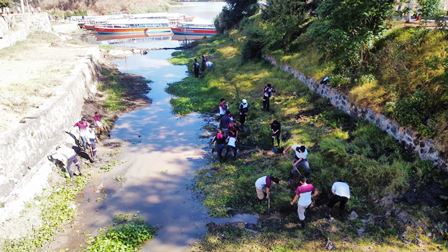 Alumnas y alumnos de la carrera técnica en Gestión Ambiental llevaron a cabo la práctica denominada desazolve de manantiales, para limpiar los flujos naturales de agua que alimentan al lago.