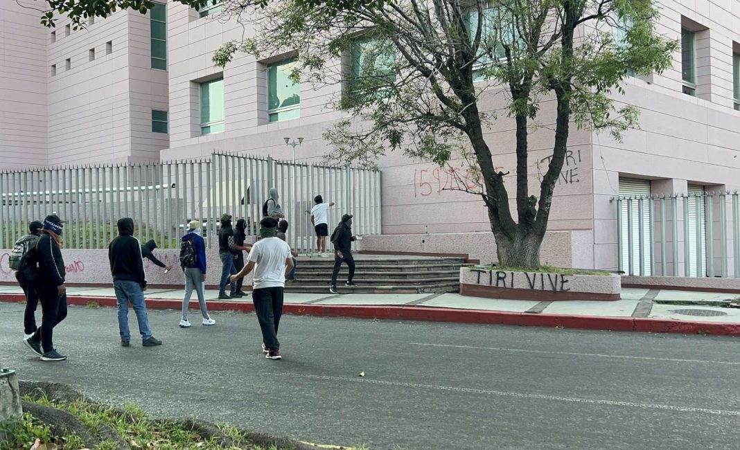 Asimismo, lanzaron cohetones y petardos en la sede principal del Palacio de Justicia, que se ubica sobre la Calzada la Huerta, la cual resguardaban elementos de la Guardia Civil.