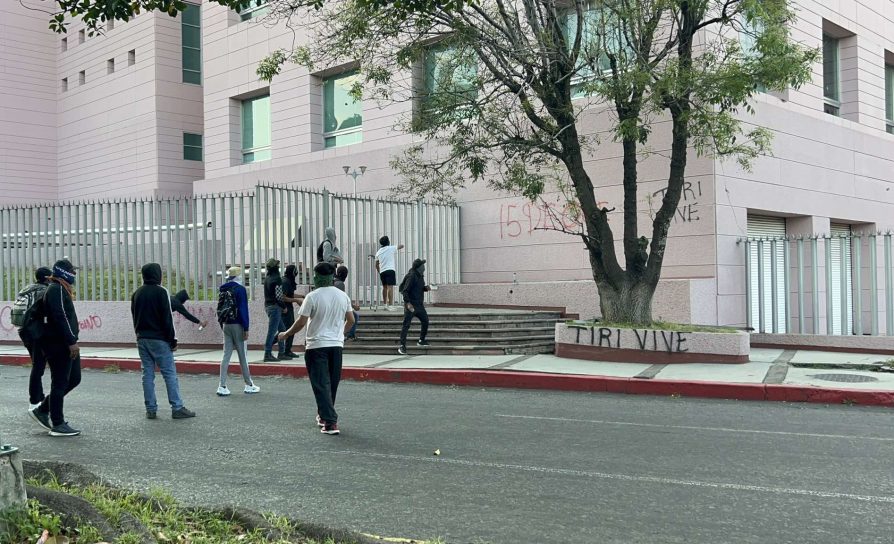 Los inconformes vandalizaron y gritaron consignas, en las que destacaba “Ni perdono ni olvido”, “El color de la sangre no se olvida”.