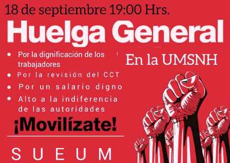 SUEUM ha determinado prorrogar el estallamiento a huelga que tenía previsto el próximo Lunes en la Universidad Michoacana, en demanda de pendientes dejados por administraciones pasadas tanto de Rectoría como del gobierno de Silvano Aureoles que dejó de dar el aporte de recursos que le correspondía.