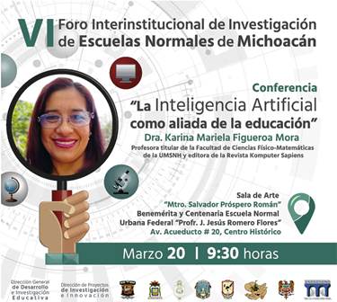 Este será un espacio de análisis e intercambio de experiencias que se podrá aprovechar para obtener nuevas y mejores herramientas para la práctica docente; la primera actividad será el miércoles 20 de marzo a las 09:30 horas, con la conferencia «La Inteligencia Artificial como aliada en la educación», que imparte Karina Mariela Figueroa Mora.