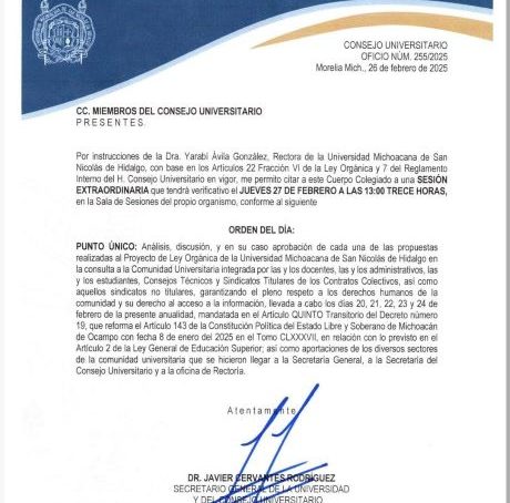 En medio de la inconformidad de los sindicatos, de la desinformación a la comunidad universitaria sobre un proyecto somero, apresurado y que quiere ser impuesto por la rectora Yarabí Ávila González, la misma ha convocado este día al Consejo Universitario a sesión extraordinaria con la prisa de aprobar las propuestas que se hayan hecho durante la cuestionada consulta digital que tuvo lugar del jueves pasado al lunes 24 de febrero, y de la cual no tuvieron conocimiento casi la mitad del alumnado a quienes no les llegó nunca el correo de acuerdo a información recabada.