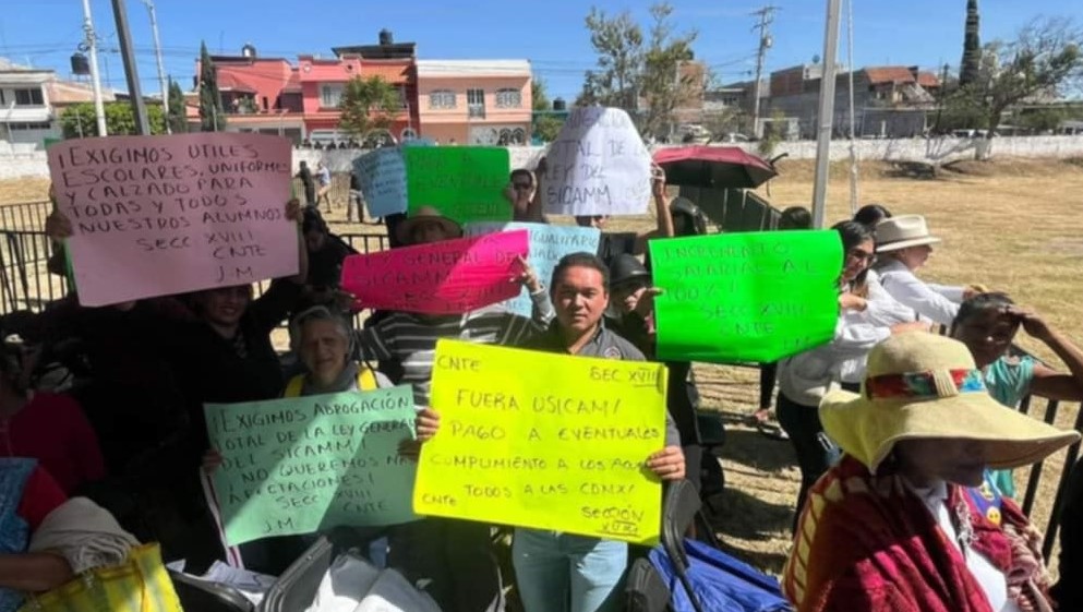 La CNTE del ala que dirige el líder Jairo Mandujano Ortega entregó ayer el pliego de sus demandas a la presidenta de México Claudia Sheinbaum, durante su visita en Álvaro Obregón a donde llegaron en manifestación pacífica, para hacerle saber a la primer mandataria del país que la situación para los trabajadores de la educación en Michoacán no está bien, es irregular y además de que los trabajadores de adscripción estatal reciben un trato discriminatorio de parte del gobierno de Alfredo Ramírez Bedolla. Amén que no quiere reconocer a los trabajadores eventuales que llevan dos años sin cobrar su salario.