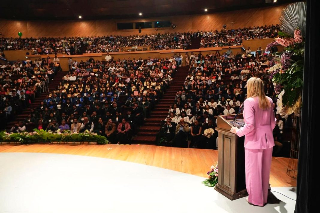 Ante las y los recién graduados, la rectora señaló que esta es una primera meta de muchas más que seguramente concretarán en su camino profesional, de igual forma, destacó la presencia de las familias, que dijo, han sido una parte fundamental para que las y los jóvenes culminen este logro.