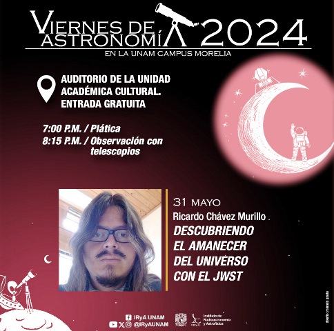 La cita es el próximo 31 de mayo a las 19:00 horas, en la UNAM Campus Morelia. La entrada es libre y gratuita, para todo público. Al término de la charla, habrá observación con telescopios, si el estado del tiempo lo permite.