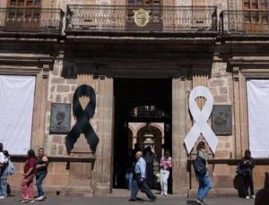 A su vez, en la fachada del Colegio de San Nicolás y como del Centro Cultural Universitario, edificios de la Universidad Michoacana ubicados en el corazón del centro de Morelia, han sido colocados en las últimas horas un listón negro de luto por el crimen de Carlos Manzo Rodríguez, alcalde de Uruapan, cometido la noche del sábado pasado, así como un listón blanco en señal de respeto y homenaje a su memoria, y como una muestra también de manifestación ante el rechazo al clima de violencia en que está sumergido Michoacán.