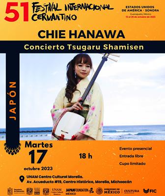 Chie Hanawa es una intérprete femenina del Tsugaru shamisen, instrumento tradicional japonés, actúa no sólo en Japón sino también en más de 20 países de todo el mundo. Presentará una actuación en solitario de canciones folclóricas como Tsugaru jongara bushi, así como clásicos mundiales que trascienden los géneros, como Spain, de Chick Corea. Hizo su gran debut en Nippon Columbia con el lanzamiento del álbum «Tsuki No Usagi» en 2004 mientras estaba en la Universidad de las Artes de Tokio. Desde entonces, comenzó sus actividades de interpretación con su banda en clubes de música en vivo de Tokio. En 2014, su álbum de décimo aniversario «CoLoRful» fue lanzado por King Records.