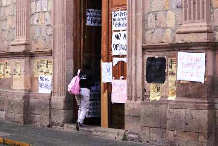 Gobierno pretende evitar enfrentamientos y el desalojo previsto por sentencia judicial, y que las partes queden en buenos términos, ante la postura de Rectoría universitaria de recuperar ese espacio que le pertenece legalmente en la parte posterior del Colegio de San Nicolás.