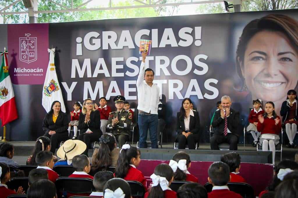 En el acto de inicio de este ciclo escolar llevado a cabo en la escuela primaria federal Madero y Pino Suárez estuvo presente Marx Arriaga Navarro, jefe de Materiales Educativos de la Secretaría de Educación Pública, quien fue el invitado especial del gobernador Alfredo Ramírez Bedolla. Ambos estuvieron ahí presentes en esta ceremonia donde el funcionario federal brevemente dio gracias a los gobiernos estatales que han permitido la distribución de estos libros cuya elaboración él dirigió, y alabó a los docentes y especialistas que participaron en crear e integrar estos contenidos, además de que aprovechó para darle un repasón «a los medios» que según afirmó, se encargaron de criticar y cuestionar estos contenidos.
