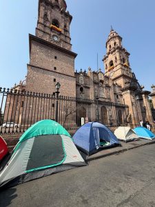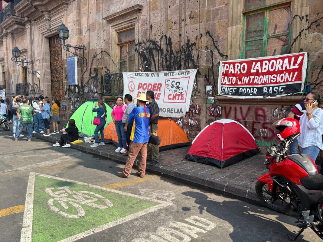 Centistas del ala Poder de Base han iniciado esta mañana la instalación de casas de campaña y mamparas fuera de Palacio de Gobierno bloqueando ese tramo de la Avenida Madero, en lo que es el inicio del plantón indefinido tras la falta de respuesta del gobierno michoacano a sus exigencias.