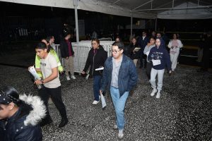 Autoridades universitarias les brindan indicaciones para ubicarse en el espacio que les corresponde.