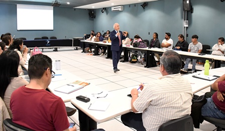 Por su parte, el Dr. Enrique Ruiz-Velasco Sánchez resaltó la necesidad de innovar en los métodos de enseñanza, enfocándose en el uso lúdico y pedagógico de la tecnología para involucrar a las y los estudiantes en un aprendizaje colaborativo y comunitario que les permita desarrollar una visión amplia y progresista.