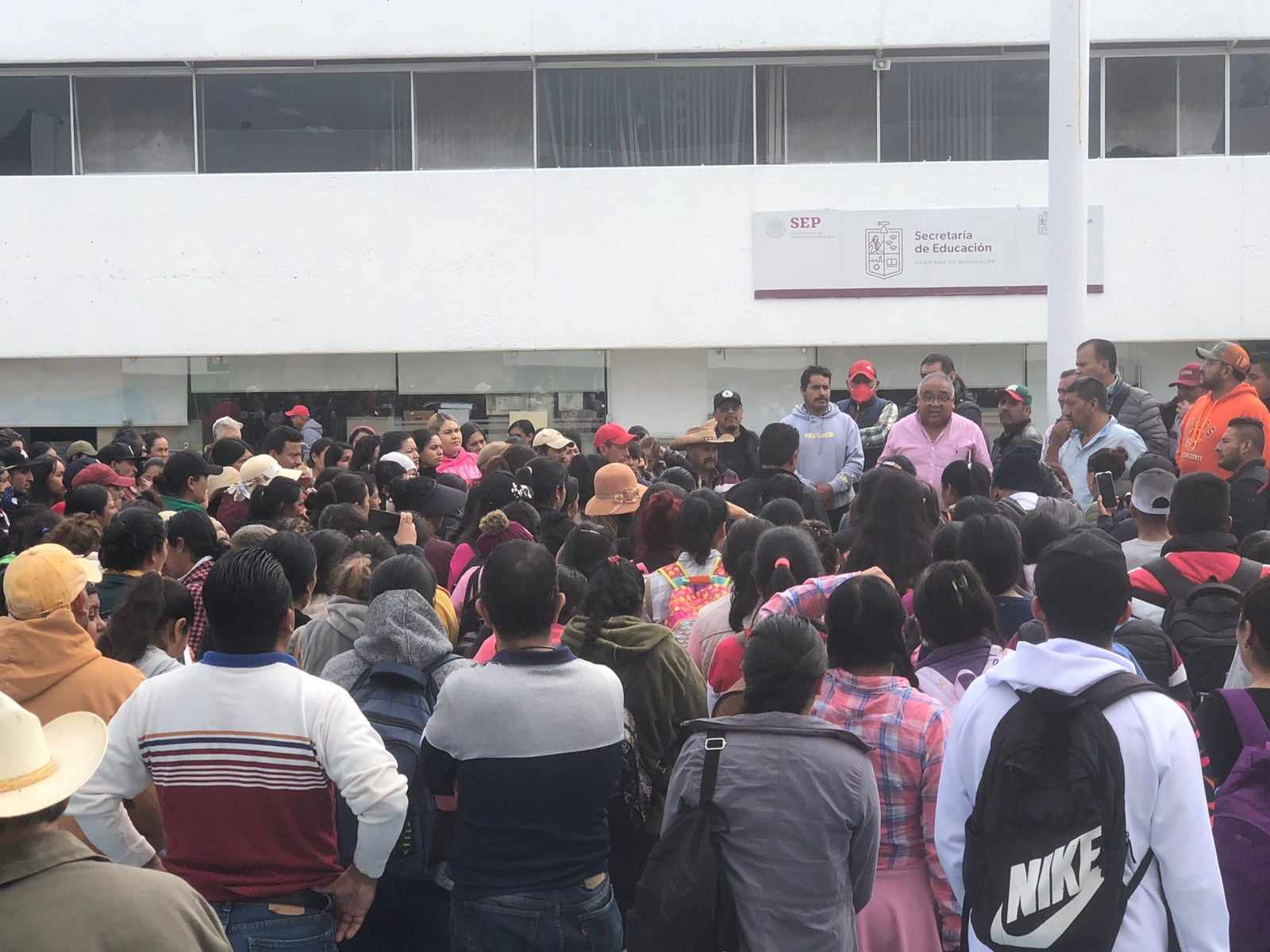Ya fueron recibidos por una comitiva de la dependencia educativa pero solo les han dado largas, dijo, y no hay respuesta hasta este momento, por lo que ahí permanecerán por horas en espera de tener solución a su problema, mismo que es un problema de muchos municipios al interior del estado que no resuelve la SEE, falta de docentes frente a grupo en educación básica.