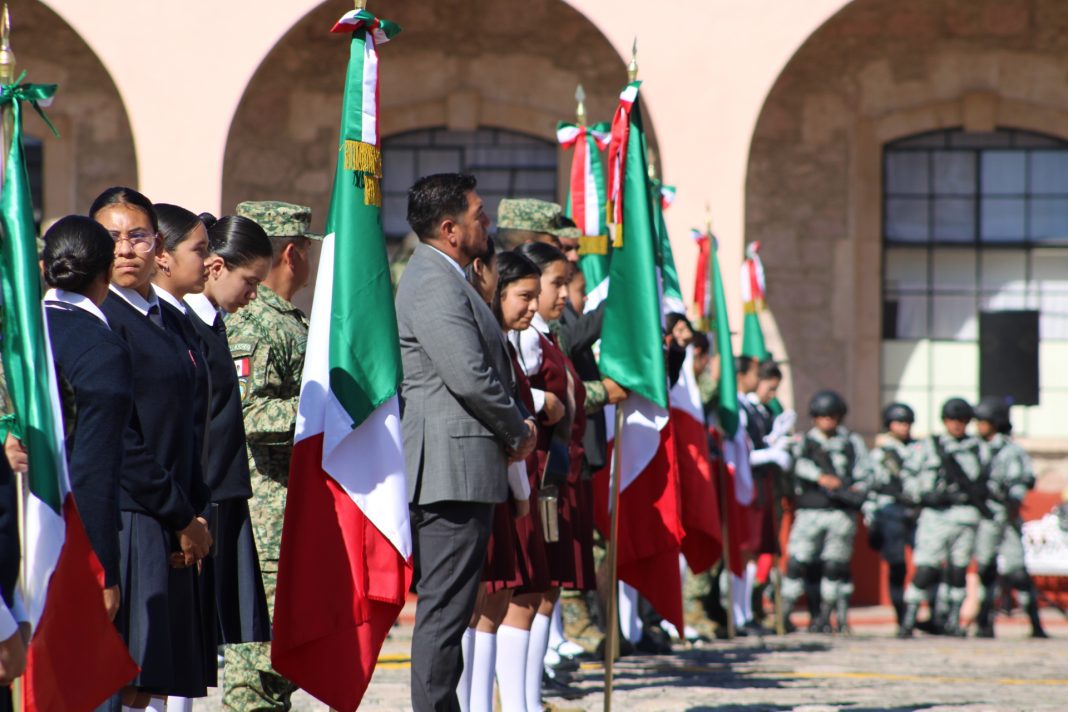 El civismo y el respeto a los símbolos patrios son fundamentales en las escuelas, ya que fomentan el sentido de pertenencia y la identidad nacional entre los estudiantes, comentó la secretaria de Educación, Gabriela Molina, al acompañar al gobernador Alfredo Ramírez Bedolla y al general Héctor Francisco Morán, comandante de la 21 Zona Militar, al abanderamiento de escoltas escolares, en el marco del Día de la Bandera, mismo que fue conmemorado por más de 11 mil escuelas en Michoacán.