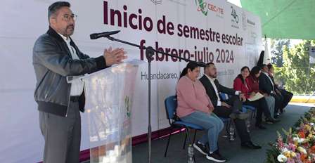 Ante la secretaria de Educación, Gabriela Molina Aguilar, la directora del Instituto de Educación Media Superior y Superior (IEMSyS), Mariana Sosa Olmeda y el presidente municipal de Huandacareo, Humberto González Villagómez, el director general del Cecytem Víctor Manuel Báez Ceja dio la bienvenida al arranque de este semestre escolar febrero-julio 2024, en las instalaciones del plantel de la localidad.