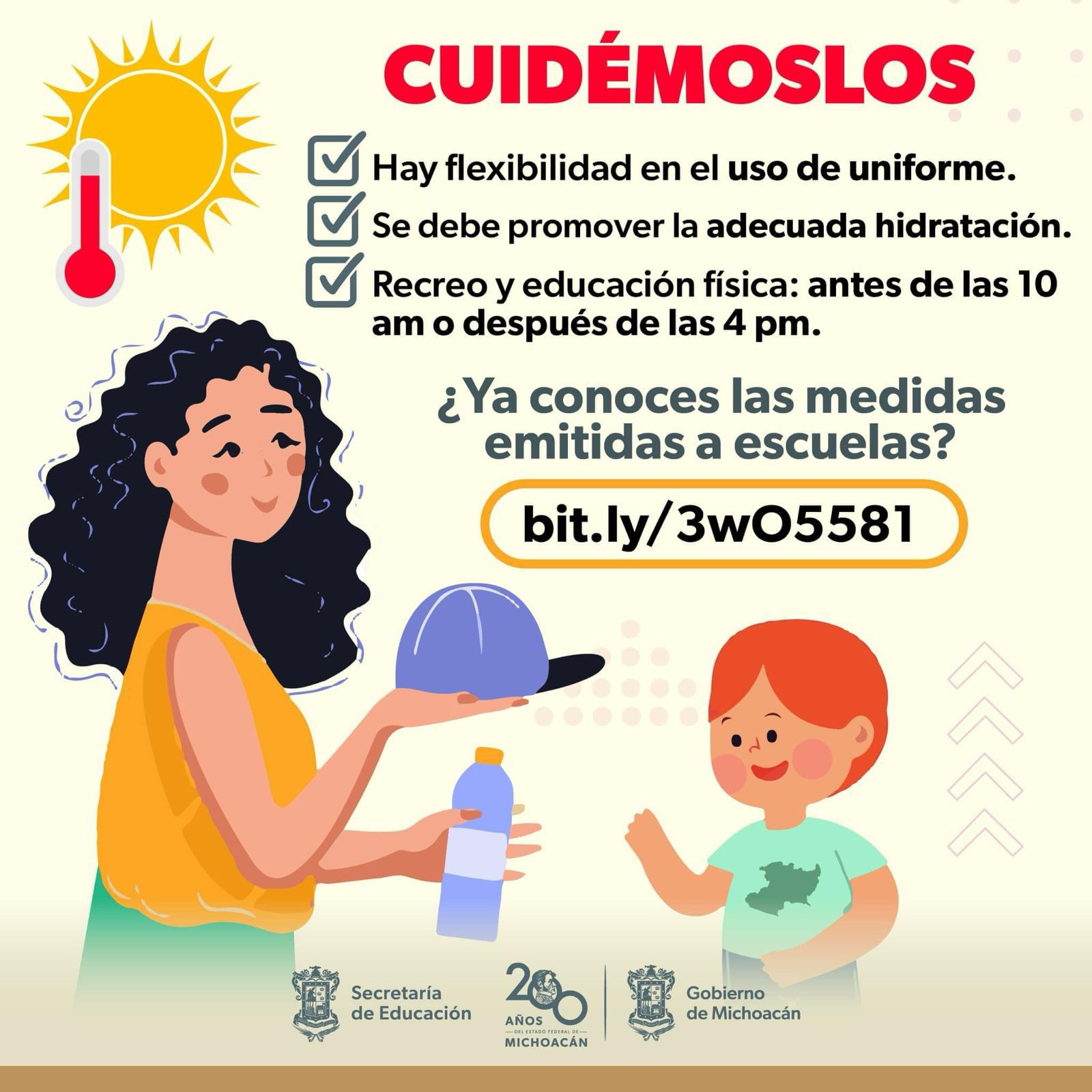 Con el objetivo de velar por la salud y bienestar de las y los estudiantes durante esta época de calor, la Secretaría de Educación del Estado (SEE) comparte con docentes y toda la comunidad escolar algunas de las más recientes recomendaciones para prevenir afectaciones por las altas temperaturas, en la circular disponible para descarga en el link https://bit.ly/443V2be.