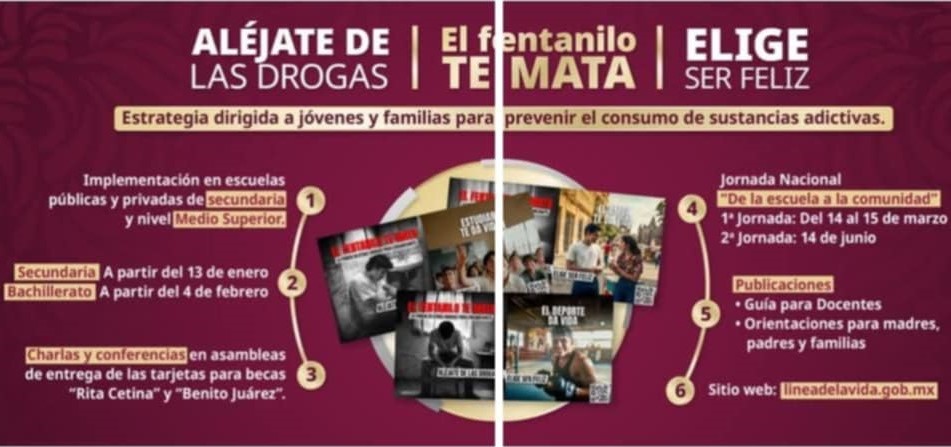 «Aléjate de las drogas, el fentanilo te mata» será llevada a más de 2 mil planteles de secundaria y preparatoria