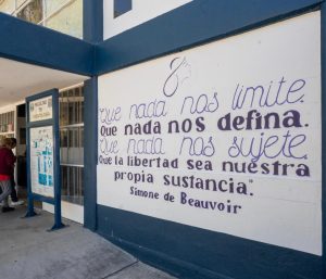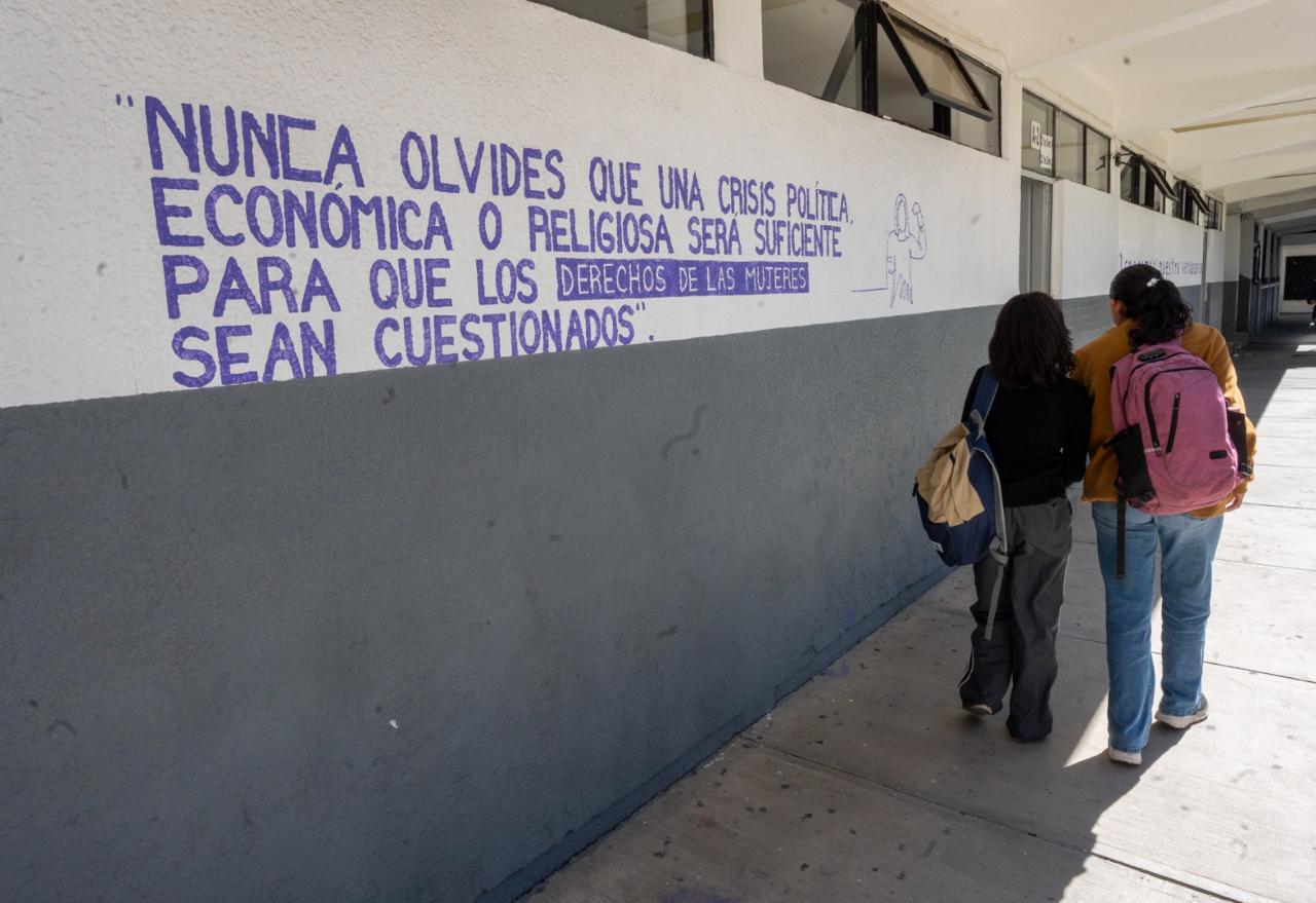 En este sentido, los edificios de diversas dependencias nicolaitas tanto en Ciudad Universitaria como en distintas facultades se visten de morado, con la pinta de frases que han identificado el movimiento Feminista, las cuales contaron con el talento y la dedicación de estudiantes de la Facultad Popular de Bellas Artes (FPBA), quienes fueron las encargadas de realizar este trabajo.